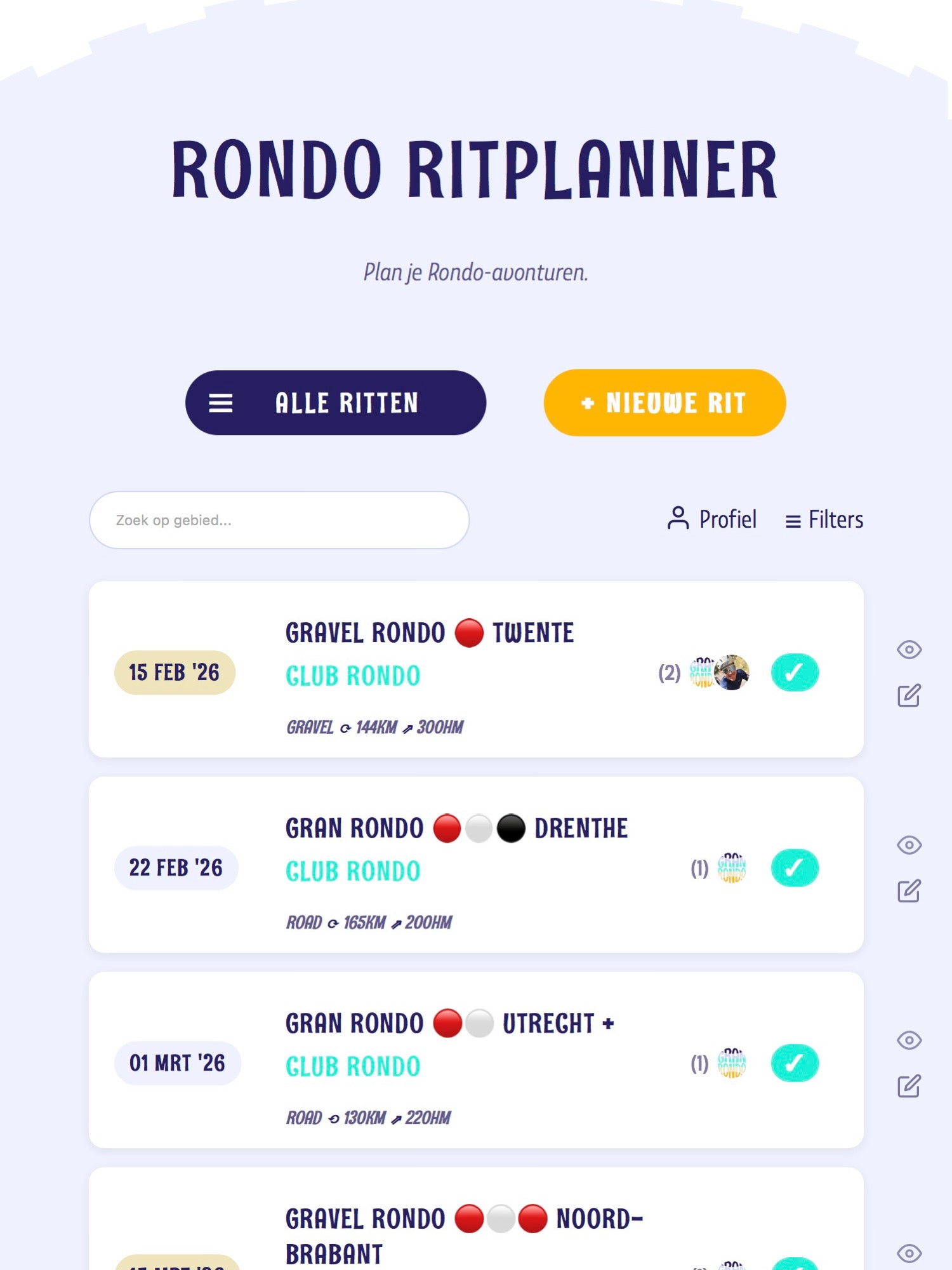 ✓ Unlimited use of the new Rondo Planner. Ideal if you enjoy cycling together.